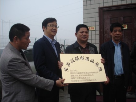 最后,陳志強(qiáng)先生和孔處長(zhǎng)、袁局長(zhǎng)將”步步高超市蛋品基地“的牌匾交到了公司董事長(zhǎng)手中。